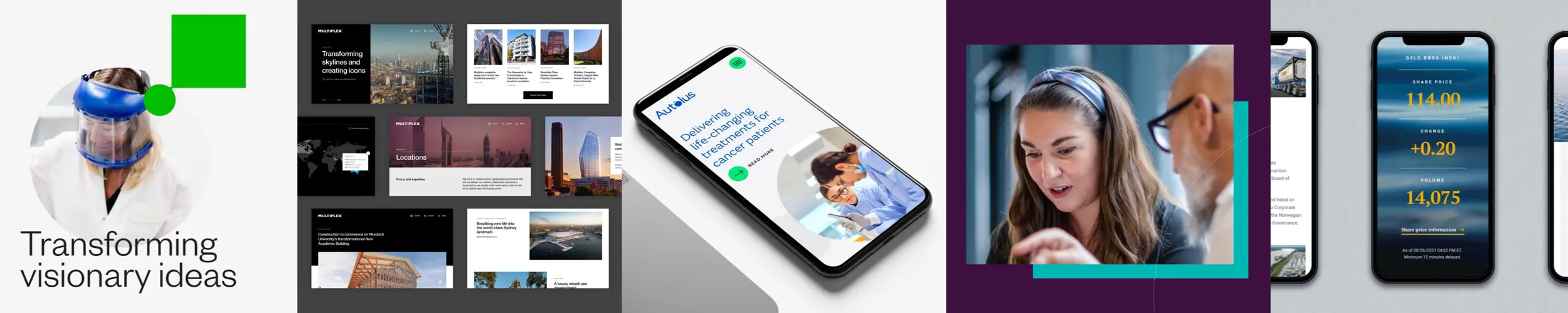 We work with clients across differing sectors and of varying scale from FTSE 100 and Fortune 500 multinationals to independent global organisations and startups/scaleups within the fields of biotech and pharma to financial services, engineering, technology and more. You can find examples of our work on our website within our portfolio. Projects we have delivered have been recognised in award nominations including: